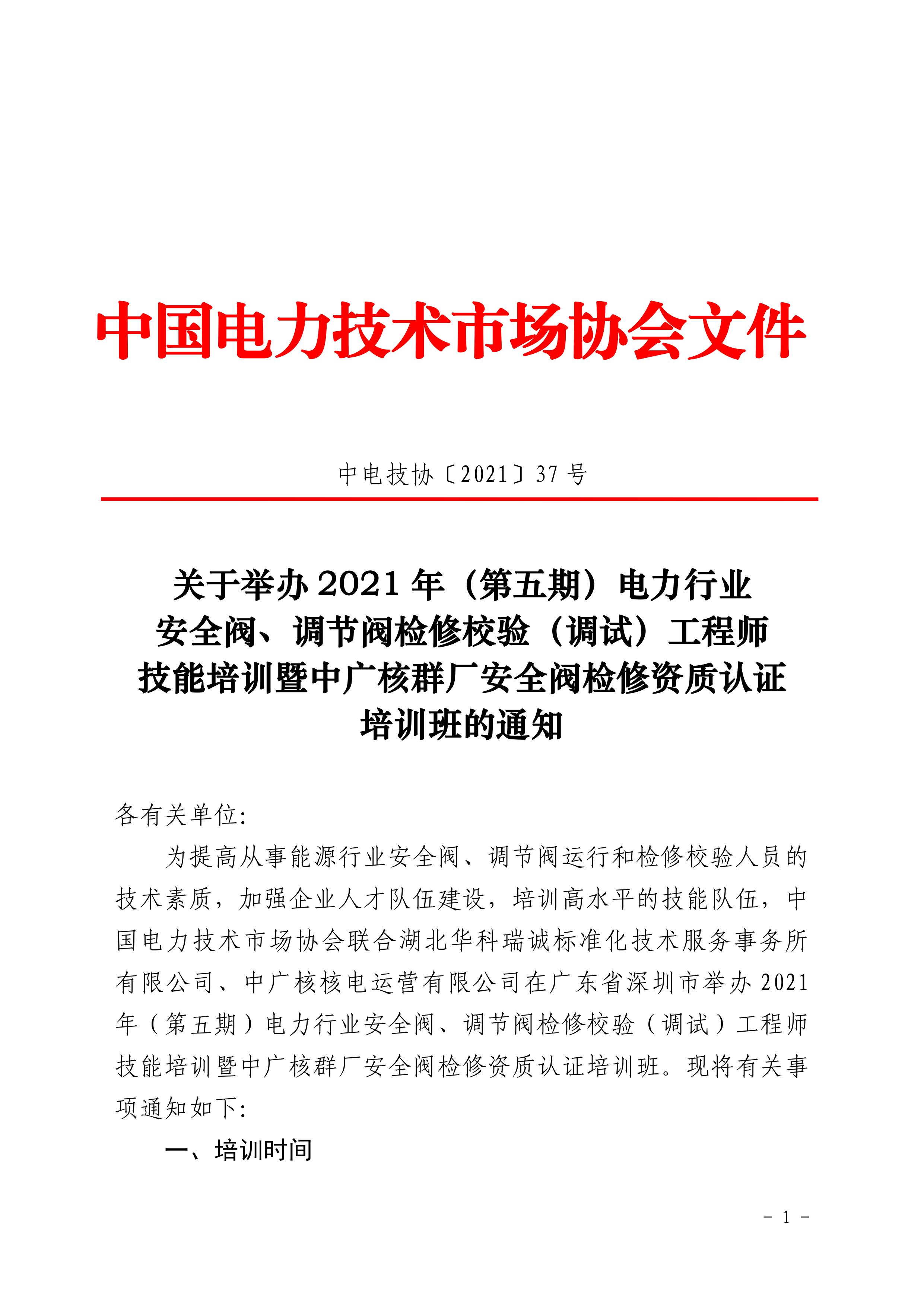 中电技协【2021】37号文,关于举办2021年(第五期)电力行业安全阀、调节阀检修校验(.pdf