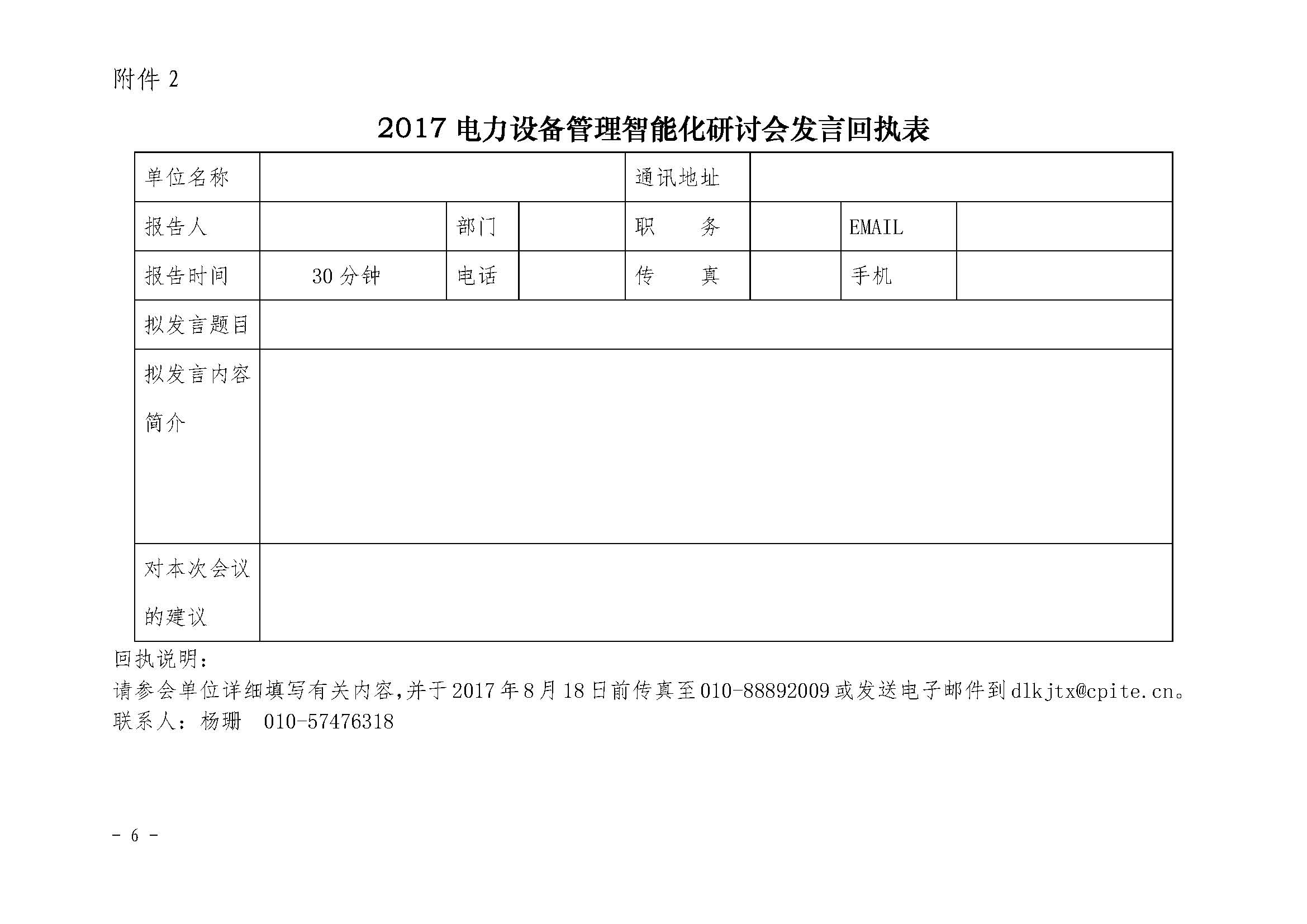 相关附件:2017电力设备管理智能化研讨会参会回执表.docx