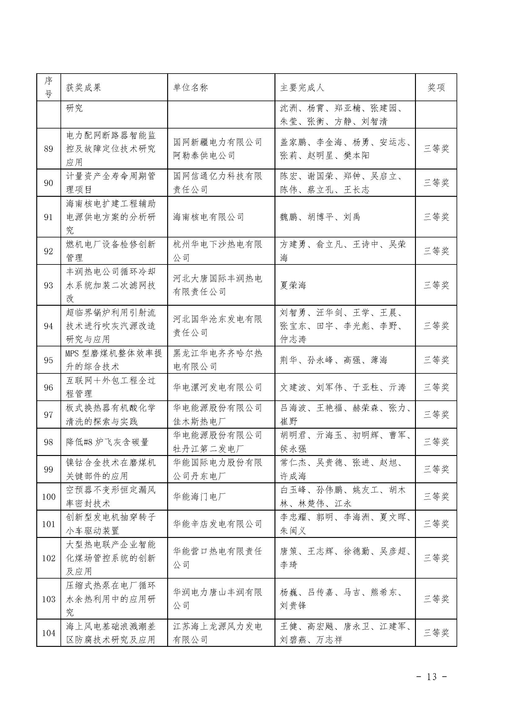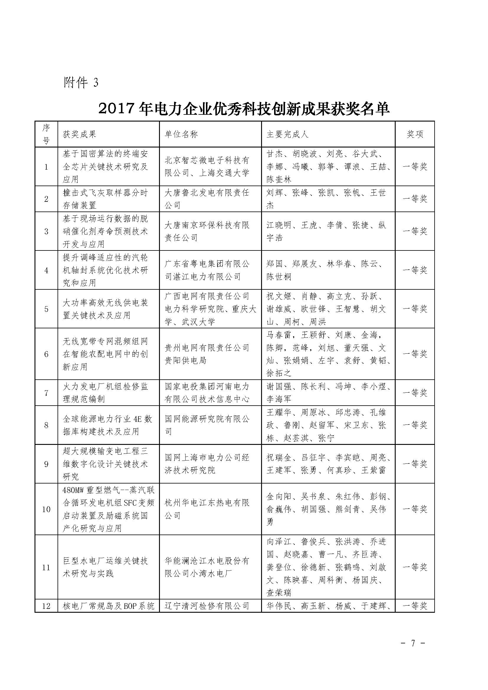 附件3:2017年电力企业优秀科技创新成果获奖名单.docx