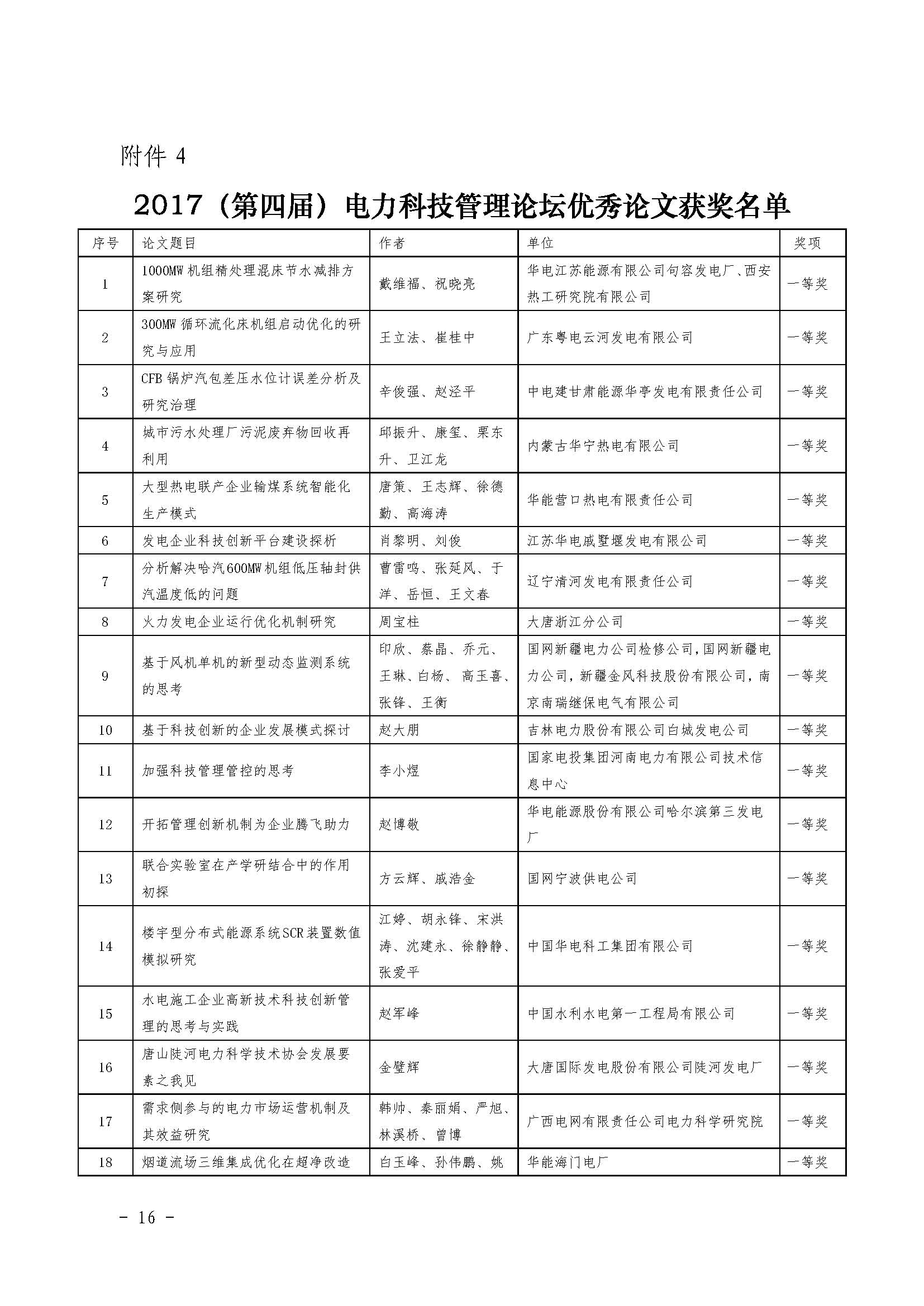 附件4:2017(第四届)电力科技管理论坛优秀论文获奖名单.docx