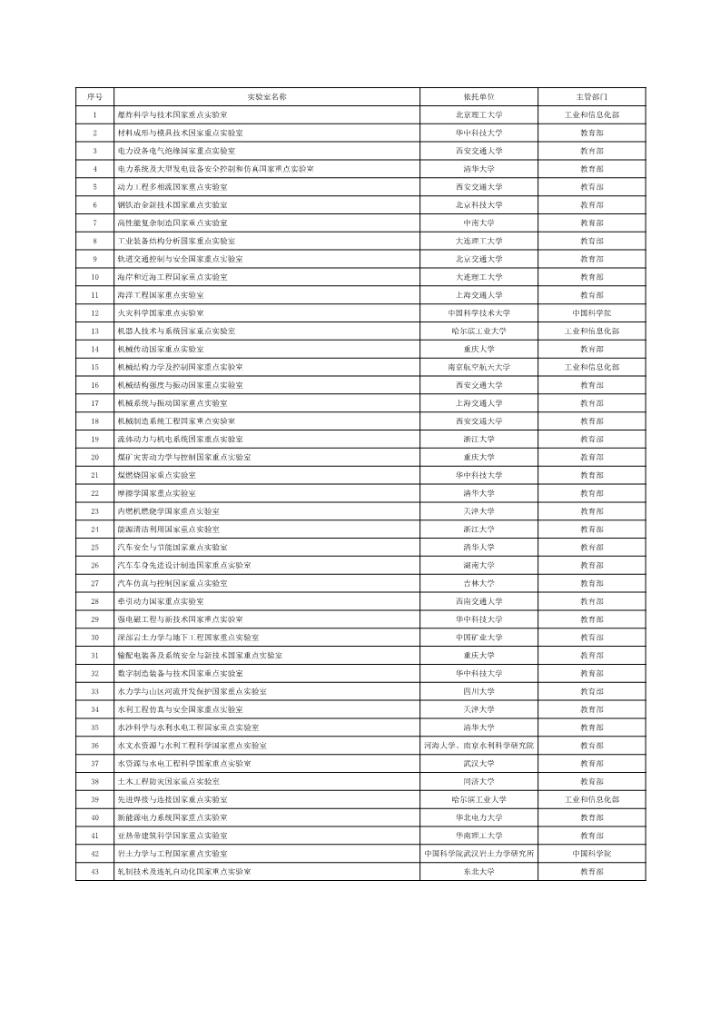 2018年度工程领域评估的国家重点实验室名单