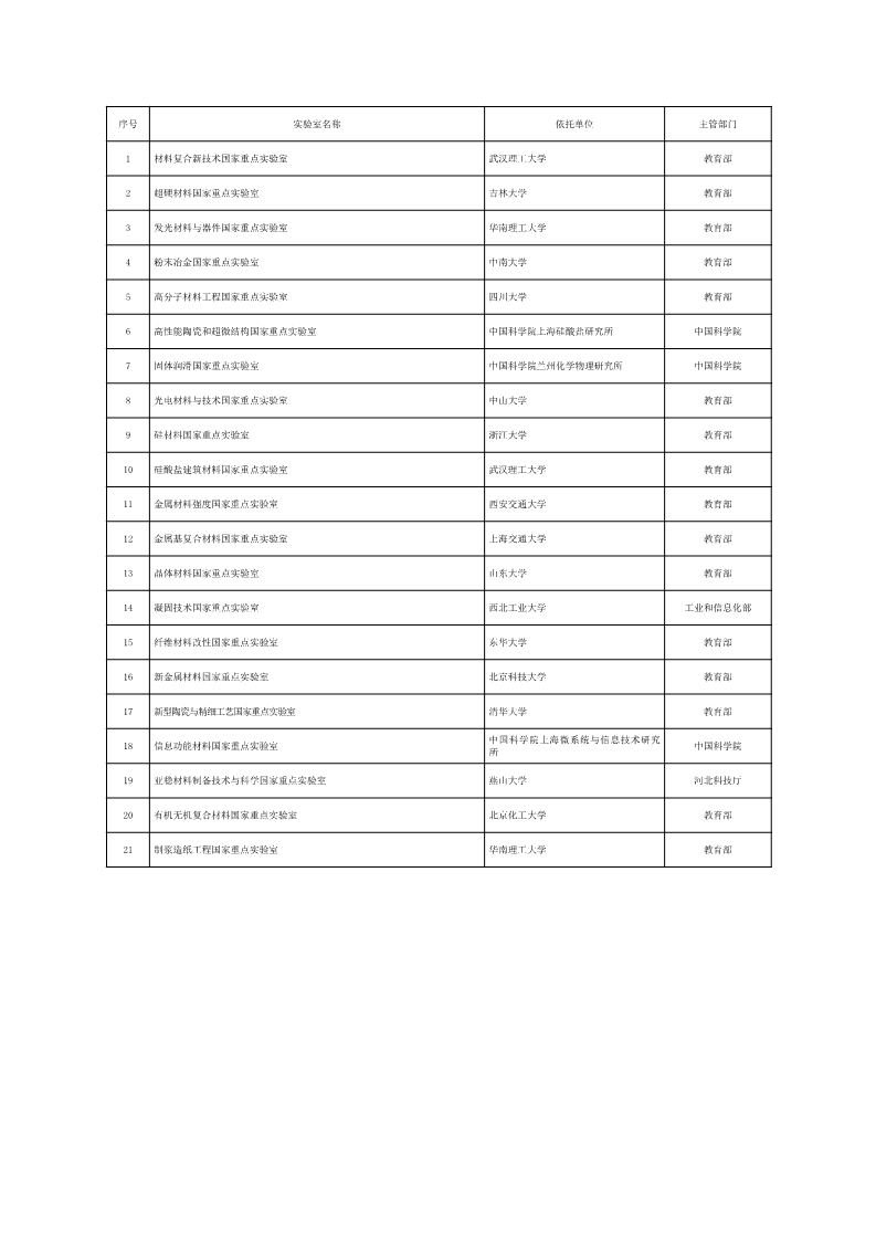参加2018年度材料领域评估的国家重点实验室名单